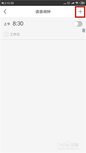 在打开闹钟界面后需要新建闹钟,点击右上角的【+】。
