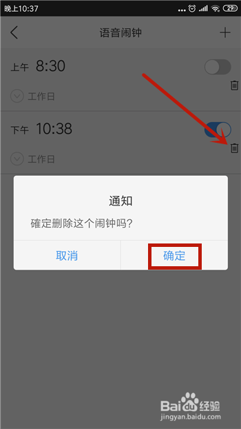 点击后可以看到就开启了闹钟,而想要删除闹钟的话就点击【删除】选项。