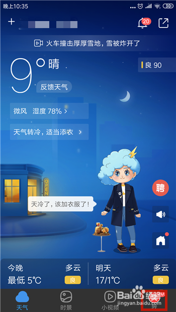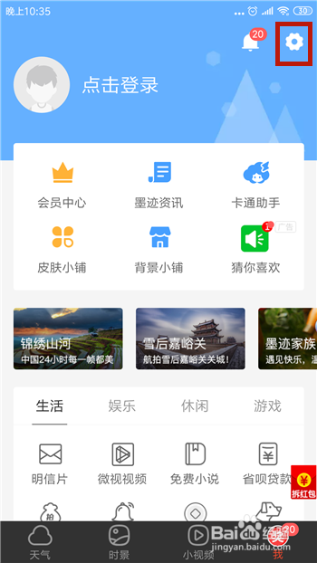 设置闹钟的方式很简单,在墨迹气候里点击右下角的【我的】。