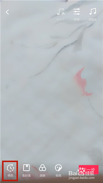 这个视频是利用的编纂特效建造的,拍一个视频并进入到编纂界面,点击左下角的【特效】。