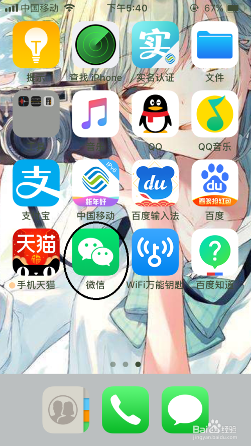 在我们的手机屏幕上打开“微信”。