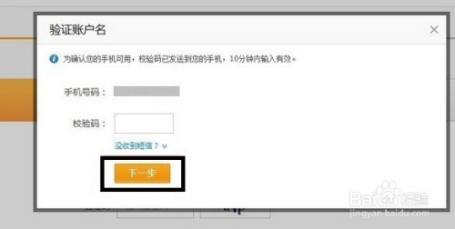 当我们收到验证码时辰,然后在界面中填入验证码即可,点击下一步