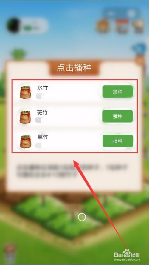 呈现的窗口中,选择播种的种子,种子有三种,别离为水竹、斑竹和慈竹。