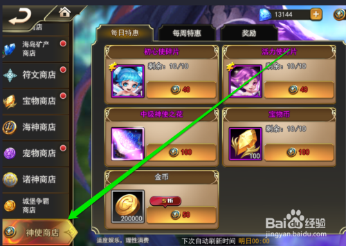 女神联盟2游戏,有开放出了新的区域,神使区域,完后神使的挑战,可以获得神使币。