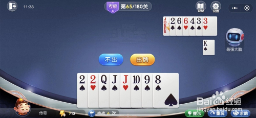 这一关,对方的优势在于三张大单牌,劣势在于对子太小,我方可以勒索顶失落对方的大牌。我方的一对2先留着,对方拆对子,我方再拆链子。