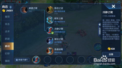 接着来看下这个英雄的出装,开门装选择鞋子,进级为沉着之靴。有15%的冷却。