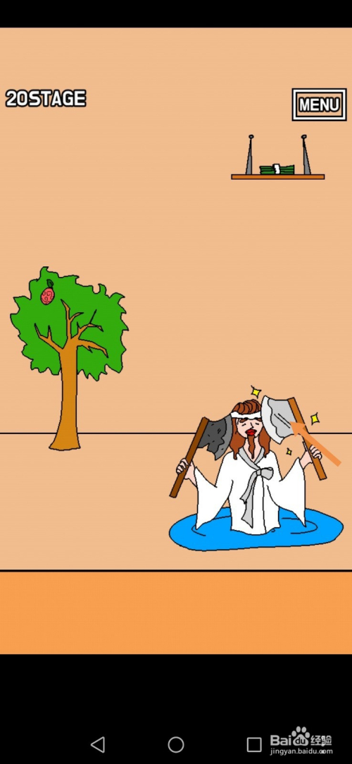 第20关先点击地上的斧头,接着将斧头拖动到水面上,斧头失落到水里后点击新的斧头。