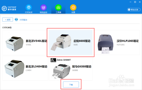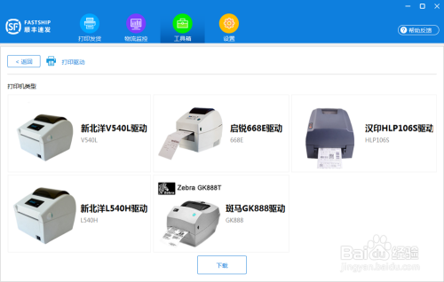 选中任一打印机,然后点击“下载”按钮,即可下载对应型号的打印机驱动。