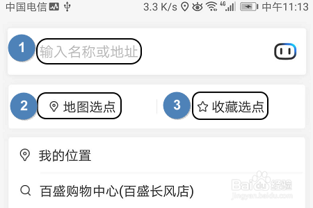 打开百度地图APP今后,我们会看到下图所示的首界面,点击最上方的输入框即可输入本身需要查找的位置了;
