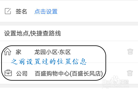 我们点击该页面中的头像,这样就切换到了小我资料界面,页面的中心就能看到之前我们设置过的家和公司的具体位置,如图二;