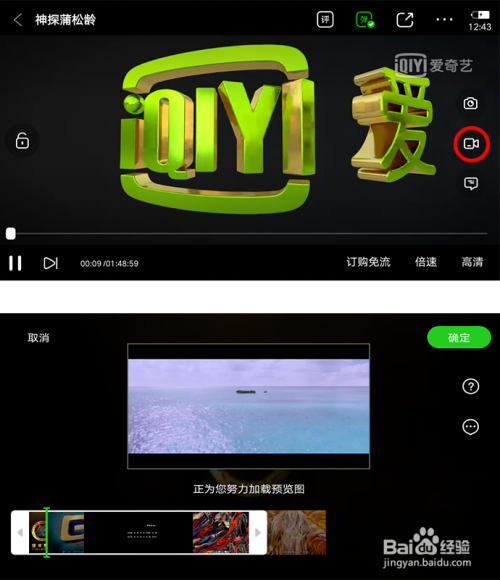 在横屏状况下还能点击拍摄图标加载预览片子,可以跳过已经看过内容片段