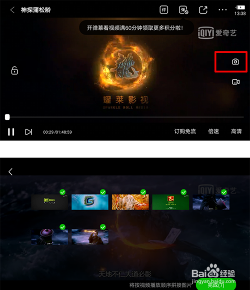 在横屏不雅看下还可以点击如图所示方框中摄影可以截图拼接图片,或者截取有台词部门