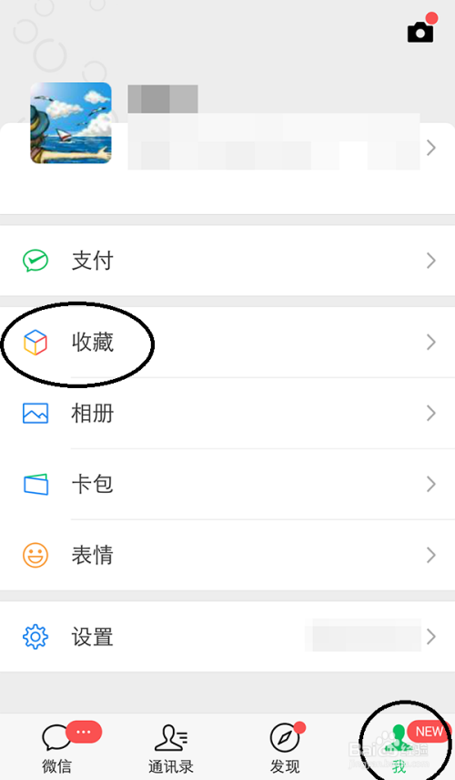 手机打开微信,选择“我的”点击【保藏】如图所示。
