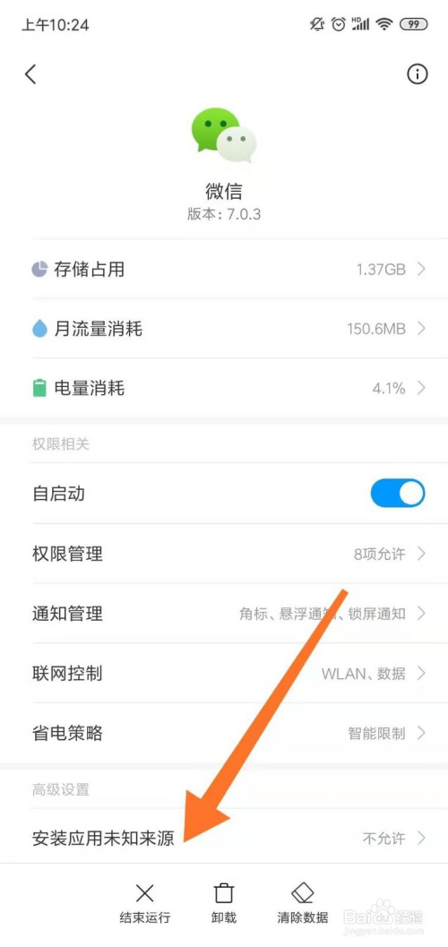 点击一下可以查看到微信此刻的运行状况,点击“竣事运行”,微信强制退出后台运行模式,同时也竣事了麦克风的占用;