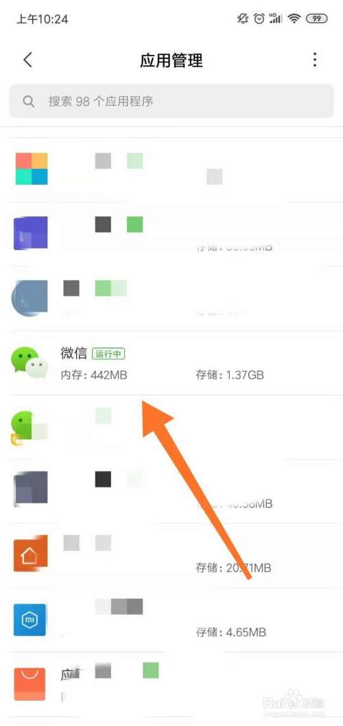 微信占有麦克风,我们可以将其零丁强制竣事运行,找到手机中办理后台的处所,一般在“应用办理”处,我们看到微信此刻正在运行;