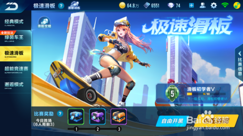 首先来说下,滑板怎么获得,新手滑板,只要玩家完当作新手练习,系统就会主动送一个滑板了。不外有个活动可以获得更高级此外滑板了。