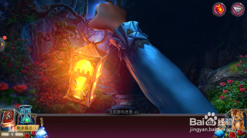 我们前次点击进入了村外,我们来到村外,可以看到外面一篇漆黑,我们点击下方的灯笼,把外面照亮,发现了熊,可是熊跑进了丛林里面。