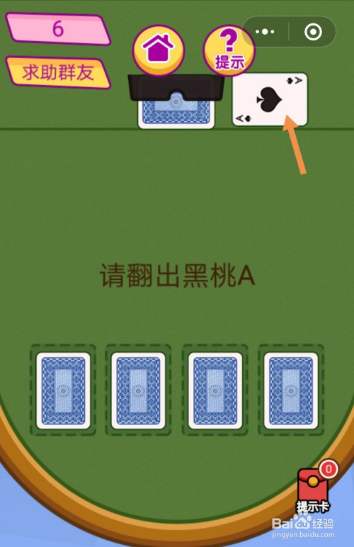 第6关标的目的下滑脱手机屏幕,然后点击黑桃A这张纸牌就过关了。