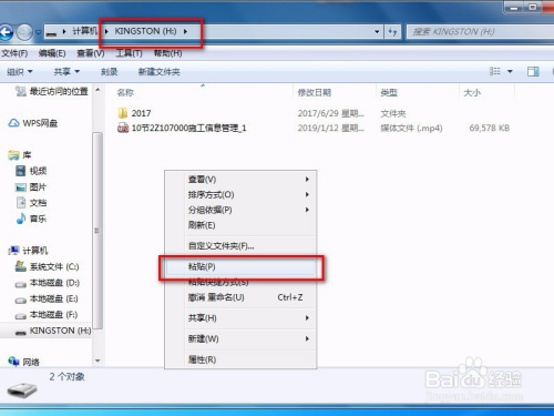 然后点击“计较机”打开U盘,点击鼠标右键选择“粘贴”或按快捷键按快捷键ctrl+V。