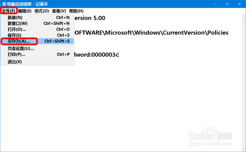 点击记事本窗口左上角的【文件 】,鄙人拉菜单中点击【另存为】;