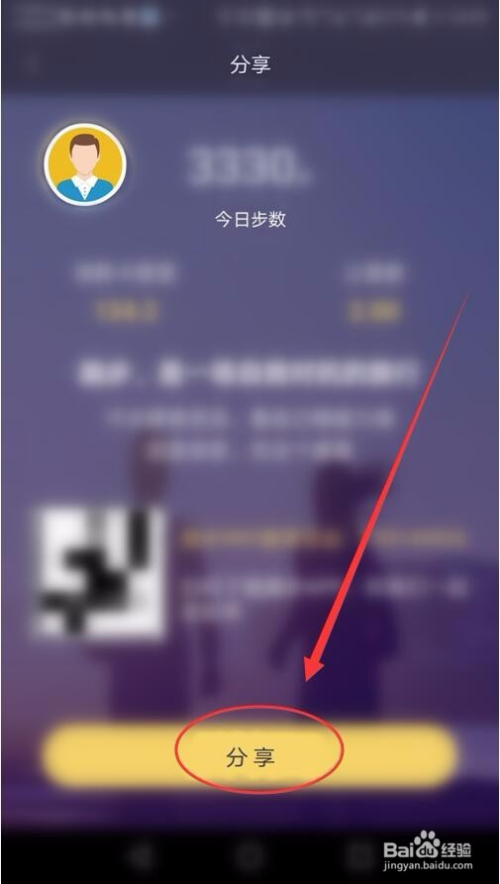 呈现的分享窗口中,会显示今日步数的分享信息,单击分享按钮。
