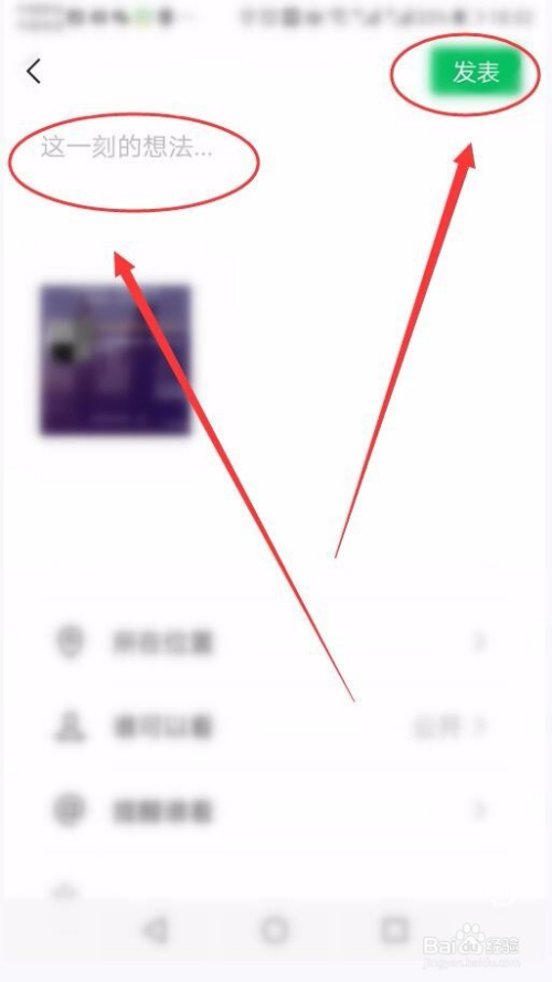 选择第二项,呈现朋友圈分享窗口后,输入本身的留言,点击颁发。