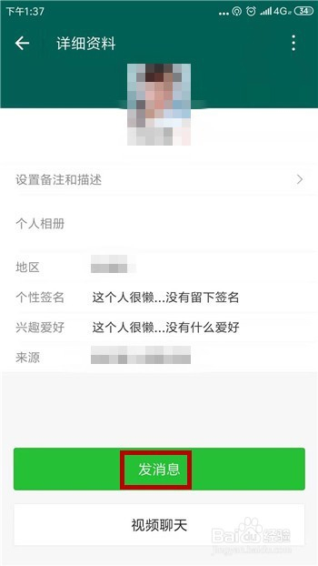 在老友的具体信息界面中点击【发动静】选项。