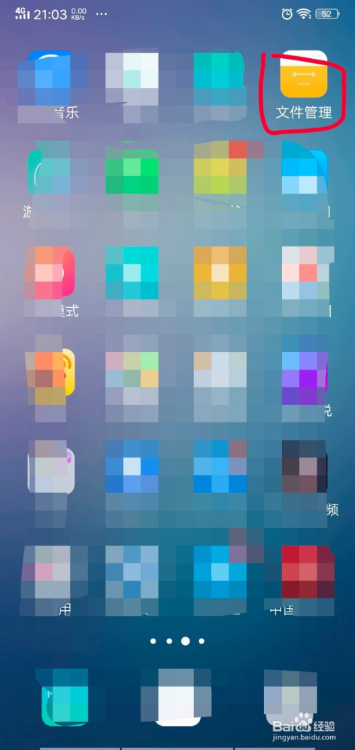 我们返回击机本家儿页,在手机本家儿页找到”文件办理“图标,点击进入。如下图所示。