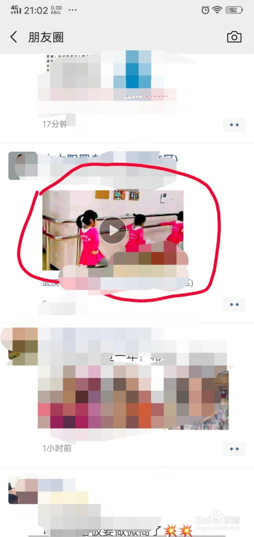 进入朋友圈后,找到我们要保留的“视频",点开视频播放,如下图所示。