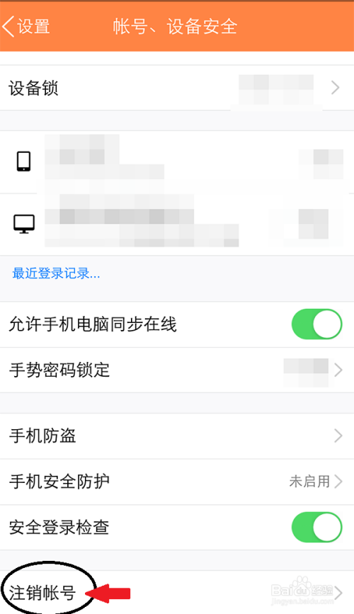 在账号、设备平安页面,滑动页面,最下方点击【刊出账号】如图所示。