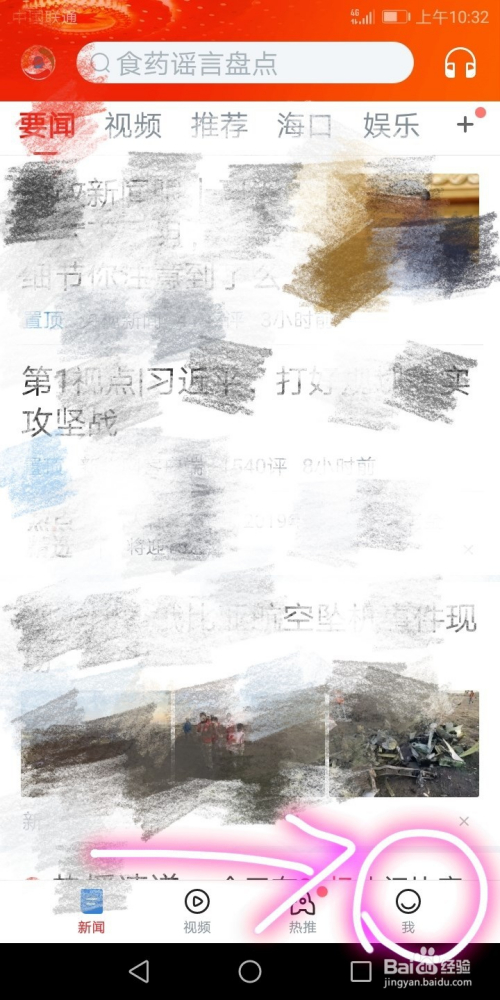 在腾讯新闻应用首页中选择我模块选项;
