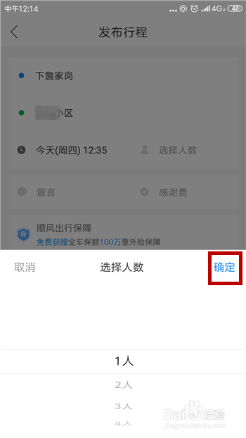 然后就是确认我们的出行人数,选好后点击【确定】。