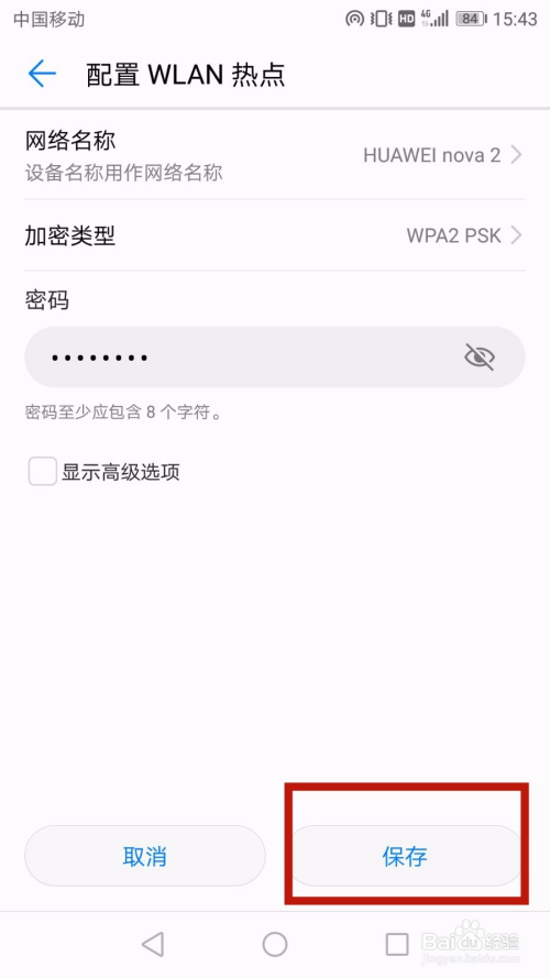 进入“设置装备摆设WLAN热点”后,输入密码后,点击保留即可。