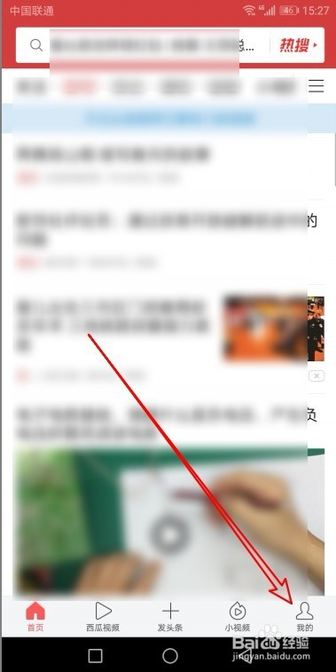 接下来在打开的今日头条软件本家儿界面,我们点击右下角的“我的”标签