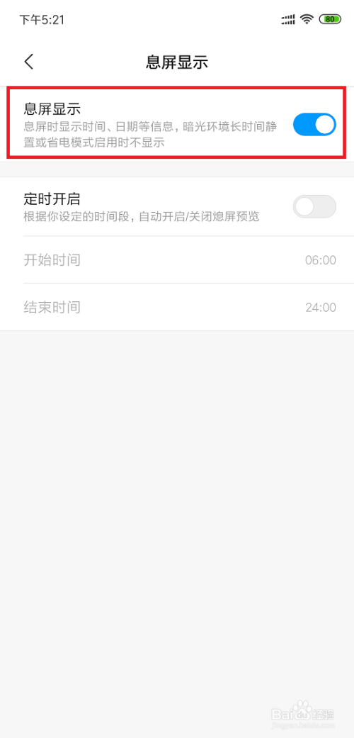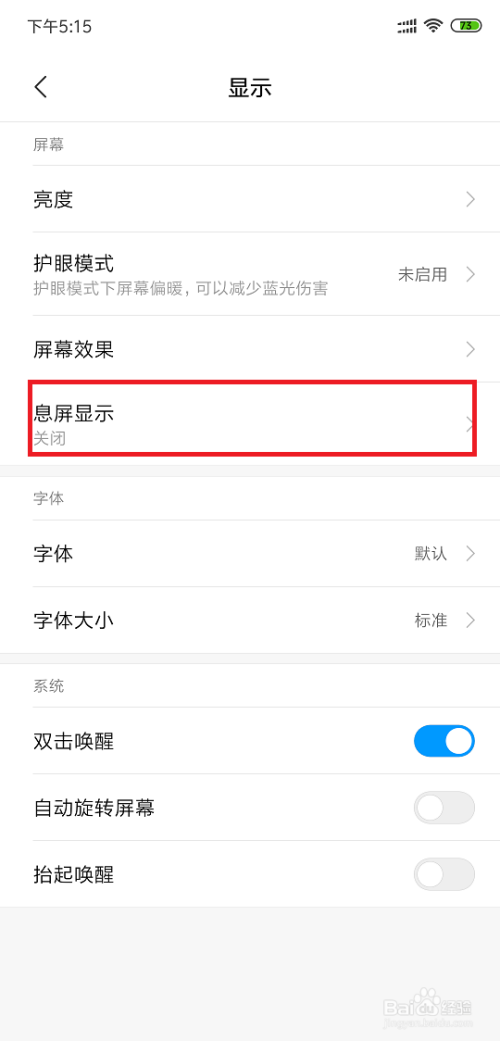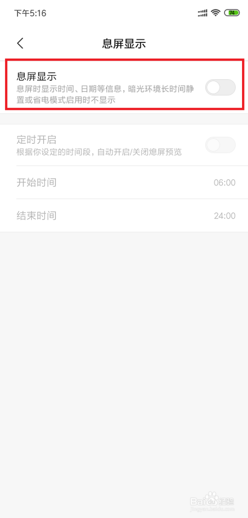我们可以看到息屏显示是封闭的。