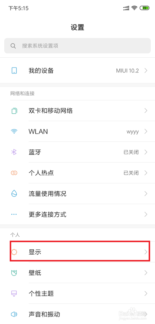 我们打开设置今后,我们可以看到有显示选项。