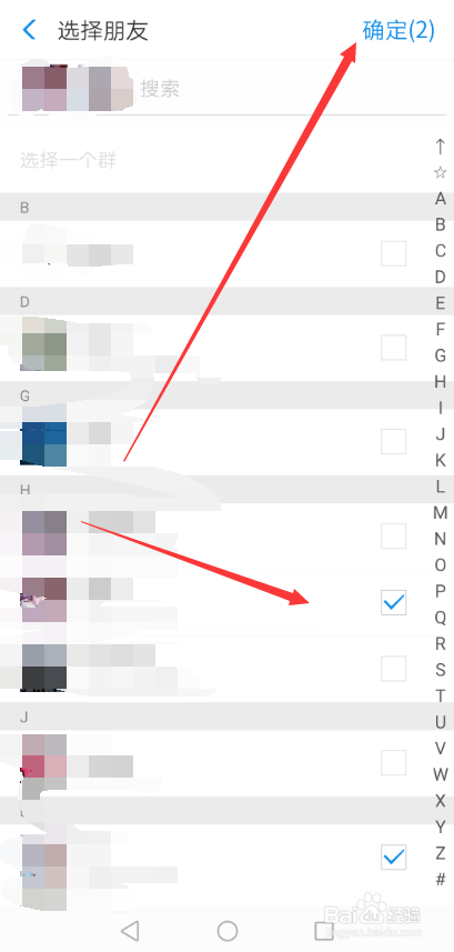 在打开的支付宝老友界面里,直接勾选要转账的老友,然后点击确定,如下图所示。
