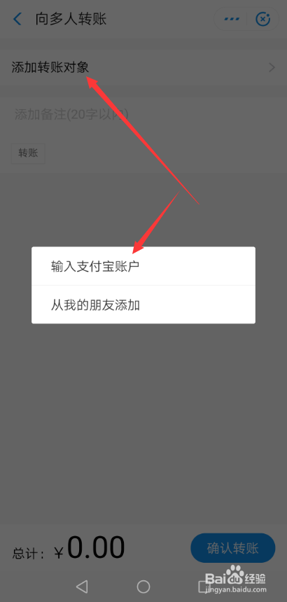 标的目的多人转账里直接点击下面的【添加转账对象】,然后在弹出的对话框里选摘要添加多人的体例,建议选择老友,如下图所示。