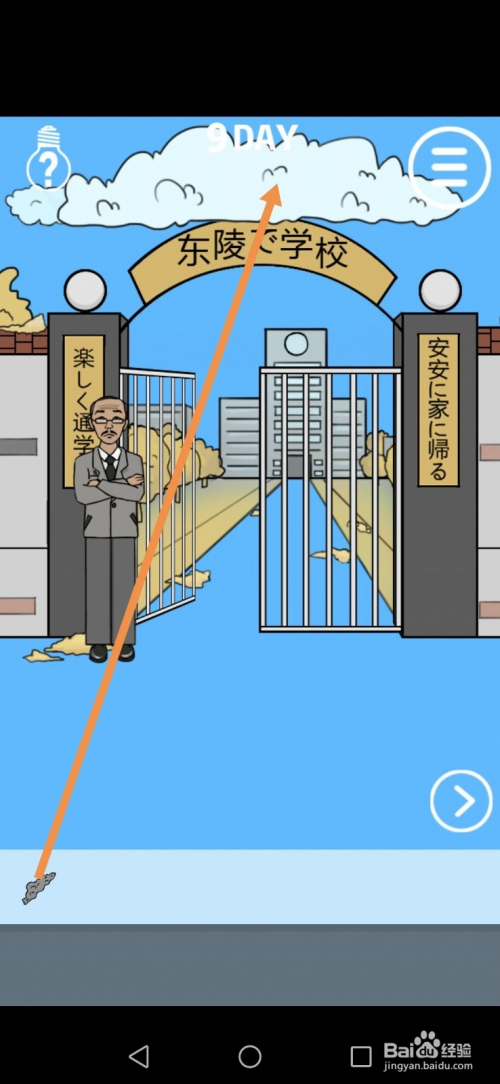 获得乌云后,点击标的目的左箭头到左边去。在左边,将乌云拖动到白云上面。教员走后,点击校门口就过关了。