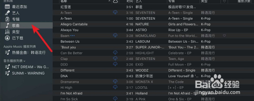 点击APP上的左边的歌曲,如下。