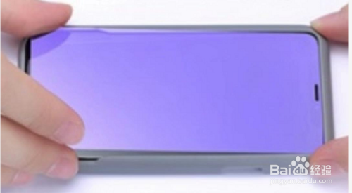 撕下钢化膜的庇护存,将钢化膜瞄准听筒位置轻轻放下;