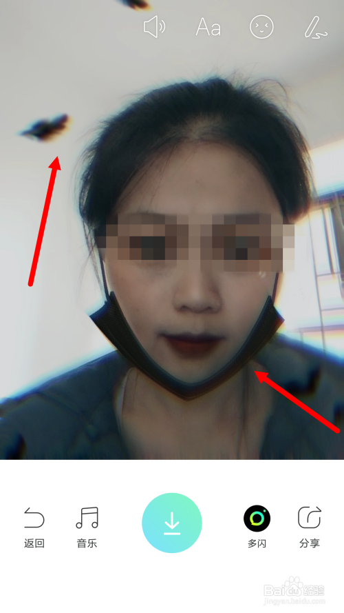 当视频拍摄到中心位置,然后人物一颔首,口罩就会消逝失落,酿成了一只只黑色的蝙蝠。这里颔首的幅度记得要稍大一点,这样手机才比力轻易识别到。