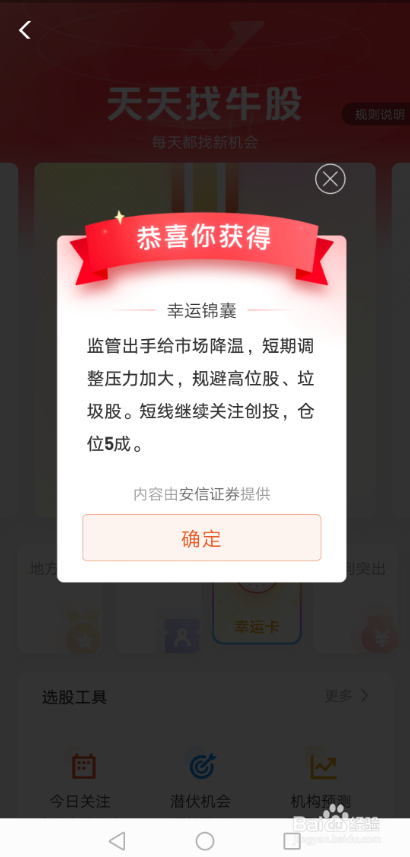 点击后,就可以开启天天找牛股的幸运卡股票攻略锦囊了,如下图所示。