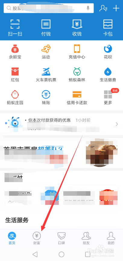 打开支付宝APP并登岸,然后直接点击底部的【财富】,如下图所示。