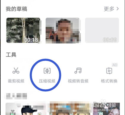 点击本家儿页界面的压缩视频编纂功能按钮。