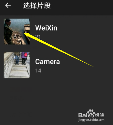 在选择片段这一步调点击要压缩视频地点文件夹。