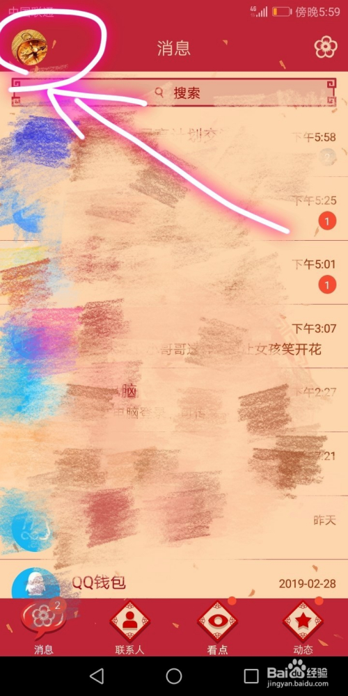 在打开的手机QQ页面中可以看到比来的聊天内容;