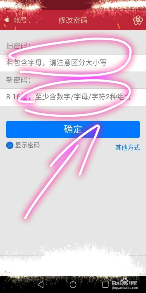 最后在点窜密码页面中按照要求填写旧密码及新密码,随后点击确定即可完当作密码点窜。
