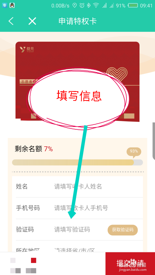 打开申请界面后,需要填写信息,按照要求填写完整信息。如图所示