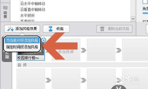 不外选好今后必然要点击下方的“添加气概结果”才行,并且可以给整个视频全数添加或者只给某一时候段添加;